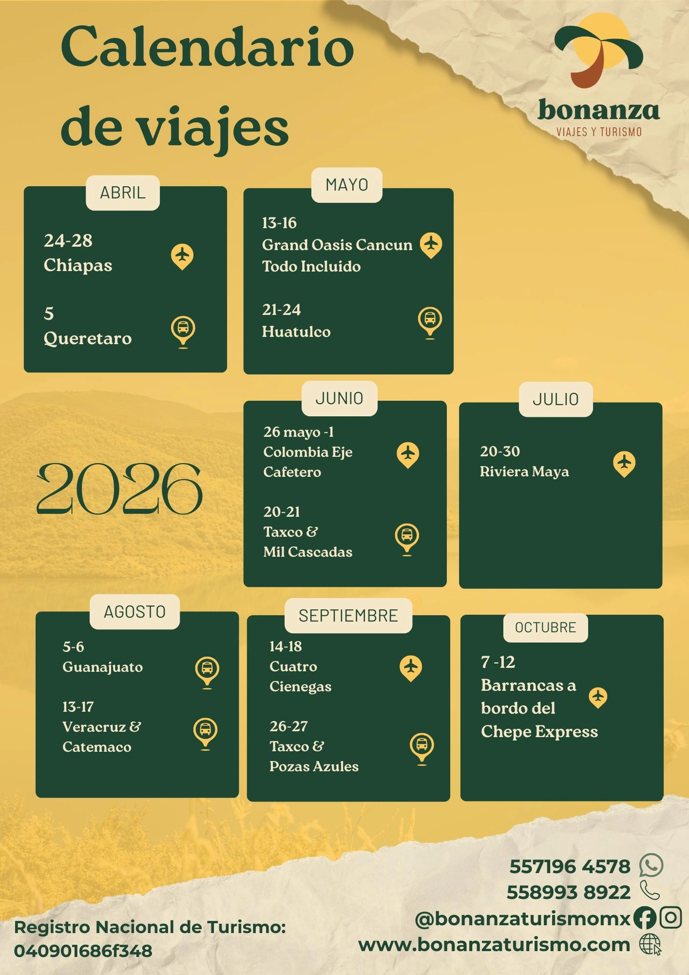 Viajar con nosotros te brinda la oportunidad de experimentar un servicio personalizado, atención al cliente excepcional y la garantía de una experiencia de viaje sin complicaciones. ¡Déjanos cuidar de todos los detalles para que puedas disfrutar al máximo de tu viaje!
